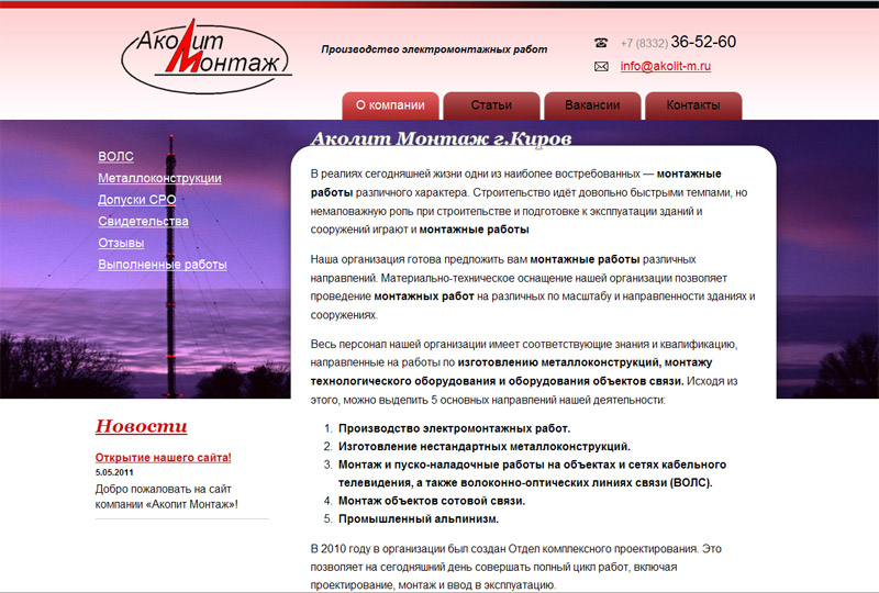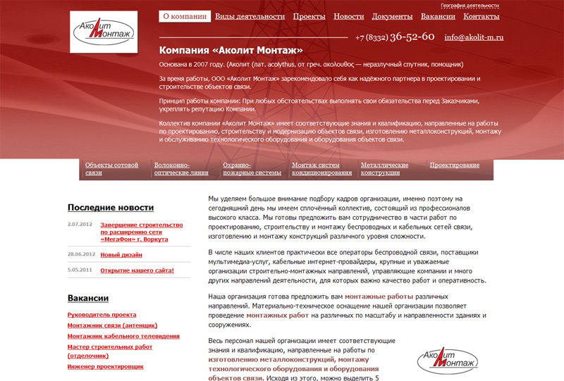 Сайт помогает компании поддерживать старые и устанавливать новые связи на рынке.