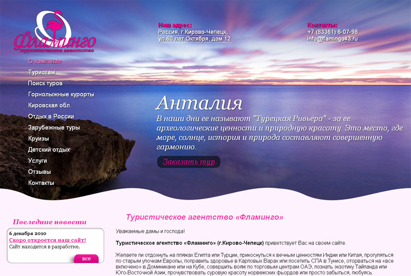 В связи с этим была определена задача создания современного сайта для нашей компании. Компания «Южный Берег» является туристическим агентством города Кирова. Мы обратились к ИП Сметанину А.С. с просьбой создать сайт для нашей фирмы.
