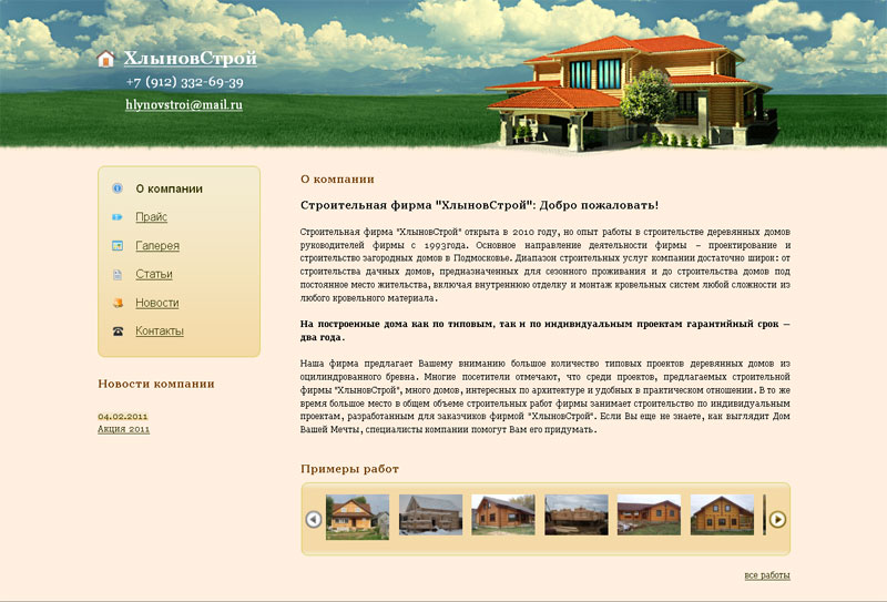 Я предлагаю Вам экономичное решение задачи - полноценный сайт по Вашим пожеланиям при обращении ко мне. Заказав у меня сайт, Вы получите недорогой, полноценный и красивый сайт. Я беру за свои услуги от 50 т.р. и всегда иду навстречу клиенту. Также я поддерживаю свои сайты 1 месяц бесплатно и постоянно консультирую своих клиентов по телефону, эл.почте, ICQ. О всех преимуществах заказа сайта у меня читайте ниже или нажмите эту ссылку.