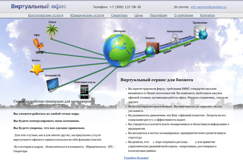 Сайт распространяет информацию о фирме не только в родном городе, но и по всему миру.